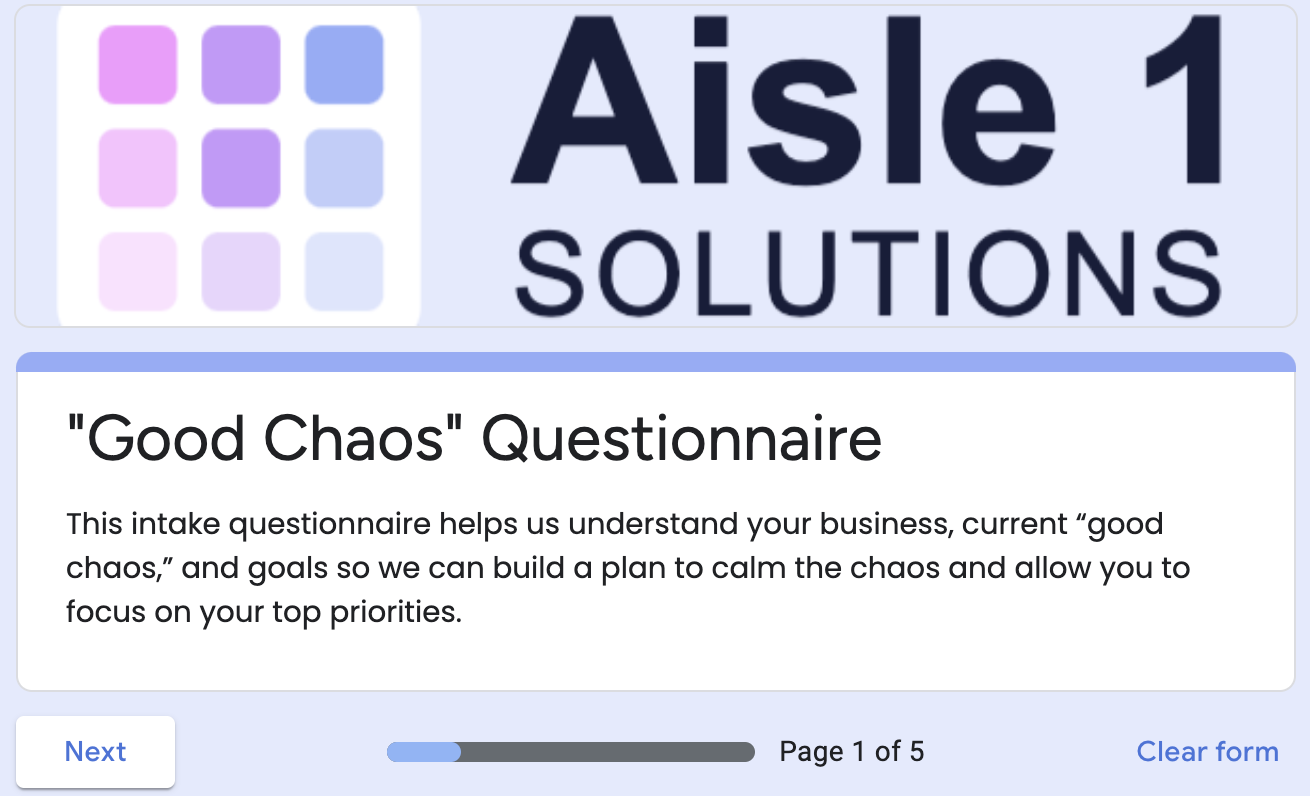 Your answers will allow us to focus in on areas of your business to start the calming process.